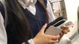 制服のミニスカからスラリとしたナマ脚