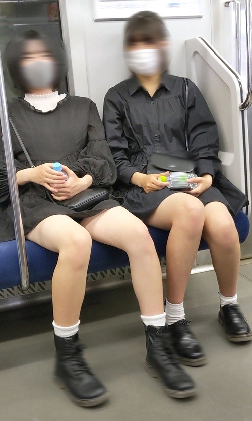 普通の状態でもスベスベの生脚太ももがガッツリ見えていてエロいのに、左側の女性はさらにガードが緩く、数分間も脚を広げて股間の黒い布を見せてくれました。