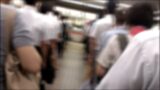 一度解放されたかと思わせて、次は胸にアクセスします。乗客がたくさんいるなかシャツを剥がされ、ブラまでも剥がされ乳首までも露出させられてしまう青の可愛い小娘。周囲にたすけを呼べない状況で触られる恐怖と快感が入り混じった彼女の表情をお楽しみください。