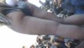 デニムのミニスカートをはいた女子大生を逆さ撮りしました。